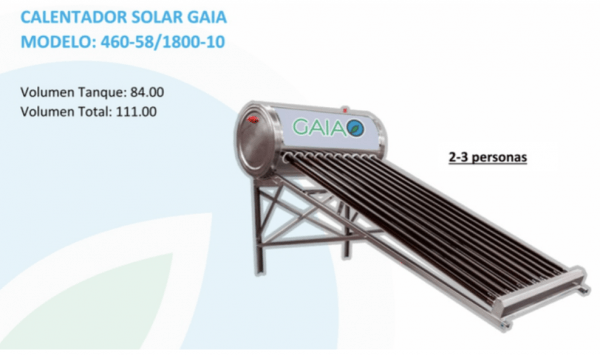 Calentador Solar Marca GAIA 10 tubos 2-3 personas Capacidad de tanque 84 LT