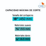 Capacidad máxima de corte Materiales suaves 3/8″ (9.5 mm), materiales duros 1/4″ (6.3 mm)